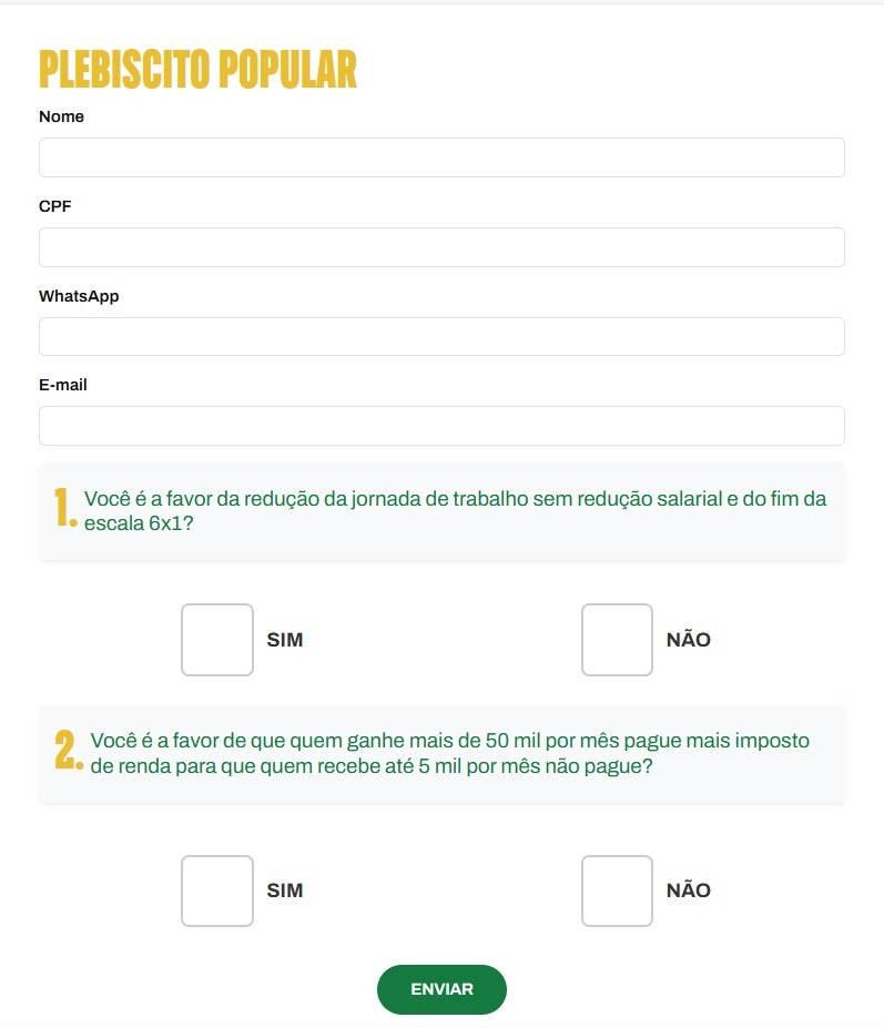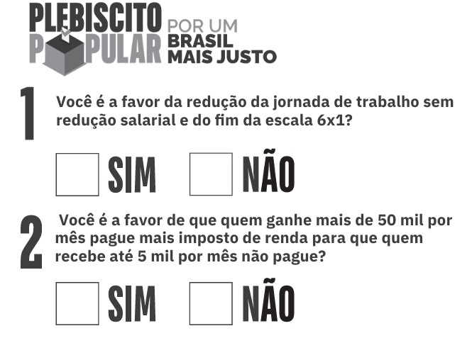 O plebiscito Popular 2025 é uma iniciativa dos movimentos sociais, entidades sindicais, movimentos de juventude, artistas, entidades de fé e partidos progressistas. Em setembro, o resultado da votação será entregue formalmente ao Congresso Nacional.